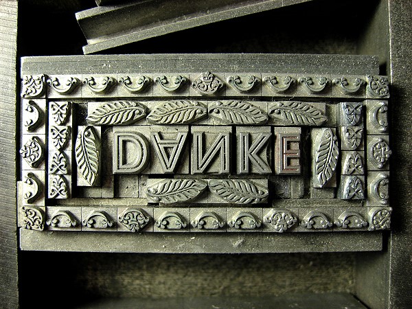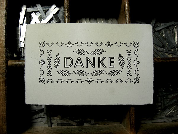 Die vor einem Jahr gedruckten Thank-you notes sind fast ausverkauft. Und seit gut einem Jahr steht auch die deutsche Variante auf der Schließplatte. Ich werde also nun dem Druck nähertreten, nur in welchen Farben? Ich überlege, einen sehr hellen hellgrünen Hintergrund zu drucken und darauf mit einem bläulichen Rot und einem kräftigen Grün.