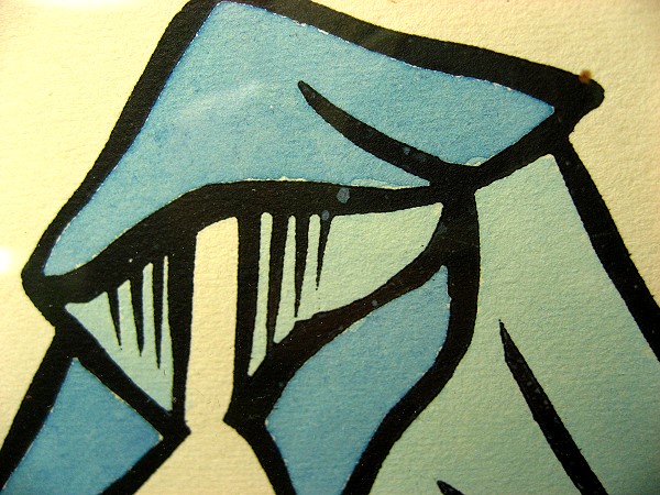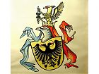 Dieses Wappen ist handkoloriert, wie man aus der Nähe sehen kann. In der einfacheren Form wird nur der den Druckern gewidmete Teil verwendet, wie er auch meine Werkstatt kennzeichnet und diese Website (siehe oben). Noch. Derzeit wird von zwei Gebrauchsgrafikern an einer dauerhaften Umstellung auf meine eigene Druckermarke gearbeitet, und vielleicht wird die Arbeit, nämlich die Umsetzung eines Holzstocks in ein Magnesium-Klischee für die Drucksachen und die Anfertigung einer weiteren Variante des Zeichens für Brandprägungen, sogar noch in diesem Jahr fertig.