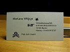 Was eine „coole“ Visitenkarte ist, habe ich von ihrer 13jährigen Schwester Marlene gelernt: ein Totenkopf gehört drauf, ein Stern, eine zeigende Hand, und auf das Aldusblatt, das auf der Karte keinen guten Platz mehr fand, kam sie zurück bei der Produktion von „Denkzetteln“. Mitten im Wort gibt es einen Großbuchstaben, und aus der 6 wird ein b. Erwachsene