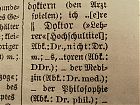 Meine Leser werden sicherlich verstehen, wenn ich ihnen Kenntnis gebe von dem angenehmen Gefühl, eine richtige Ahnung gehabt zu haben. Ich habe die Regeln für den Satz gebrochener Schriften nicht mehr alle parat, aber wenn ich dann eine Gebrochene setze, klingen leise die Erinnerungsglöckchen und führen mich zum Nachschlagewerk. In jede Setzerei gehören zwei Wörterbücher, eines der Gegenwart und eines der Vergangenheit, also etwa ein Fraktur-Duden. Dort schlug ich nach und konnte so regelgerecht den Dr. aus der Walbaum-Antiqua zur Unger-Fraktur setzen. Man muß ein paarmal davon gehört haben, dann fällt einem im richtigen Moment alles wieder ein.