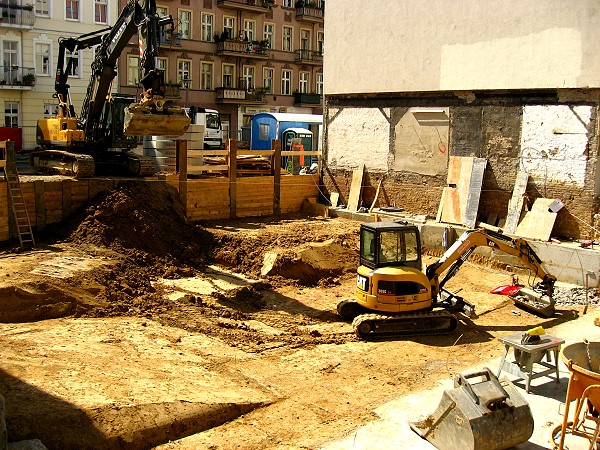 Jeden oder jeden zweiten Nachmittag schaue ich, bevor ich das Haus verlasse, auf die Baustelle. Die Arbeiter sind dann schon weg. Vom Hof kann man direkt in die Grube sehen, von der Straße geht das nicht.