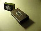 Vor dem Schneiden wurden die Drucke mit dünnem Papier durchschossen. Der Preßbalken und das Messer in der Schneidemaschine üben einen so hohen Druck aus, daß die Farbe der Farbfläche unweigerlich auf der Rückseite der nächsten Karte abziehen würde. Außerdem wird der Papierstapel für den Farbschnitt sehr hohem Preßdruck ausgesetzt. Nach dem Schneiden habe ich die recht fest haftenden Zwischenlagen abgezogen, aber für das Verpacken zwischen den Karten gelassen, denn auch Abrieb in einem festen Päckchen wäre unschön.