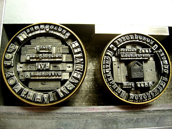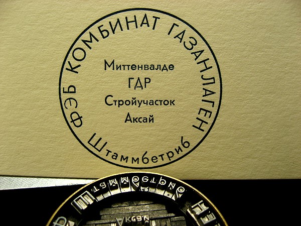 einige Rundformen mit kyrillischen Typen wieder. Die habe ich mir noch nie so genau angesehen. Bei diesem mußte ich ja lachen. Wer die Buchstaben zu lesen versteht, wird verstehen, warum: deutsche Sprache in russischer Schrift. “Schtammbetrib” ist doch hübsch, was?