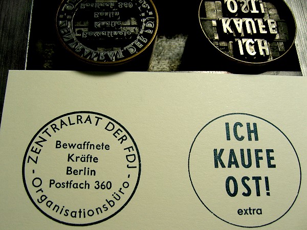 Und das FDJ-Zeichen ist ein hölzernes. Ob das noch aus den dreißiger Jahren von den Exilgruppen der FDJ stammt? Oder hat man in der DDR noch Holz gestochen für Gebrauchsgrafik?