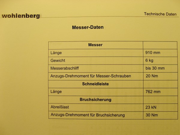 Schrauben befestigt, die mit einem meterlangen Schraubenschlüssel gelöst werden. Es ist knapp einen Meter lang, wiegt sechs Kilo und ist immer noch scharf wie eine Rasierklinge, wenn es für ein feines Papier nicht mehr scharf genug ist. Um es aus der Maschine zu lösen, schraubt man Griffe daran. An diesen Griffen wird das Teil in einen hölzernen Messerkasten bugsiert. Bevor man es darin verschraubt, bekommt es noch einen Klingenschutz aus hartem Kunststoff aufgestülpt. Man darf bei dieser Arbeit keine falschen Bewegungen machen, darf nicht stolpern, das Messer nicht fallenlassen und so fort, Verletzungen wären erheblich.