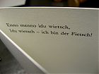 Bleisatz gibt es im Innern der Klappkarte, das Kind hat sich seinen eigenen Reim auf Ostern gemacht, und mir gefällt er sehr. Der Osterhase selbst könnte ihn gesagt haben. Möglicherweise hat das Kind ihn dem Tier abgelauscht, die Einbildungskraft ist ja eine der lebendigsten in den jungen Jahren. Merkwürdig, daß sie bei Erwachsenen umso dümmlicher scheint, je stärker sie ist. Aber davon ab, ich wünsche frohe Ostern!