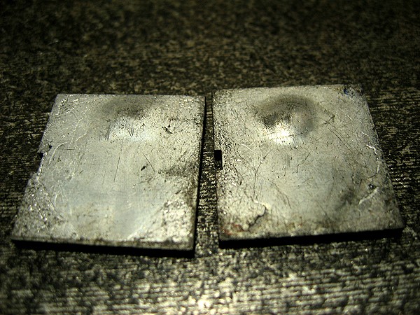 Innen ist tatsächlich ein Hohlraum. Die beiden Quadraten kommen in die Zeugkiste zum Altblei.