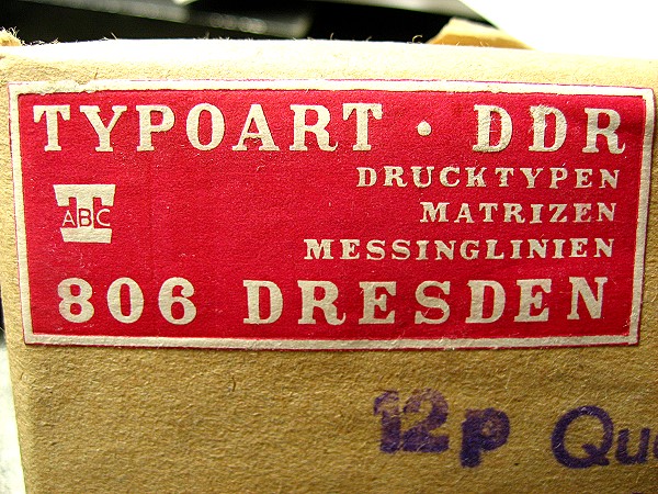 Dieses Paket kommt aus der Firma Typoart, der staatseigenen Schriftgießerei der DDR.