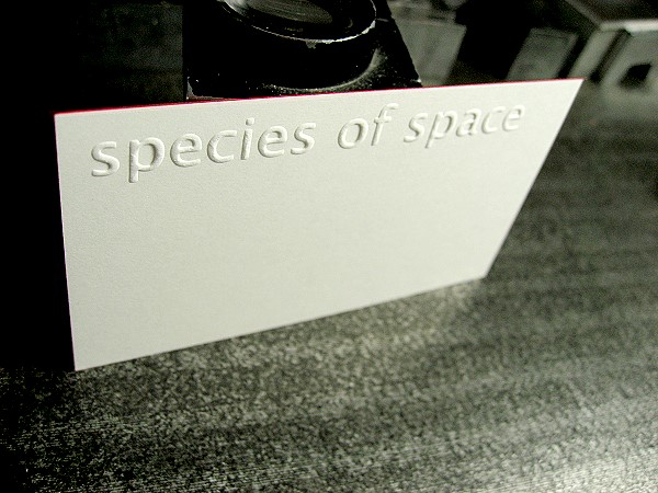 Zum ersten Mal habe ich eine Visitenkarte angefertigt ganz ohne Druckfarbe: nur Blindprägung und roter Farbschnitt.