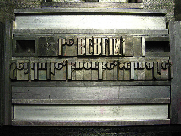 Dieses Bild zeigt den fertigen Satz in der Druckform und einen guten Druck. Was da eigentlich steht? Fragen Sie den nächstbesten Fünfzehnjährigen, so Sie einen zur Hand haben. Ich habe gelernt, daß man ein Kreuz umgedreht als Schwert verwenden kann. Und ich überlege, ob mein Zeitvertreib als Fünfzehnjähriger für die damaligen Erwachsenen ebenso geheimnisvoll war.