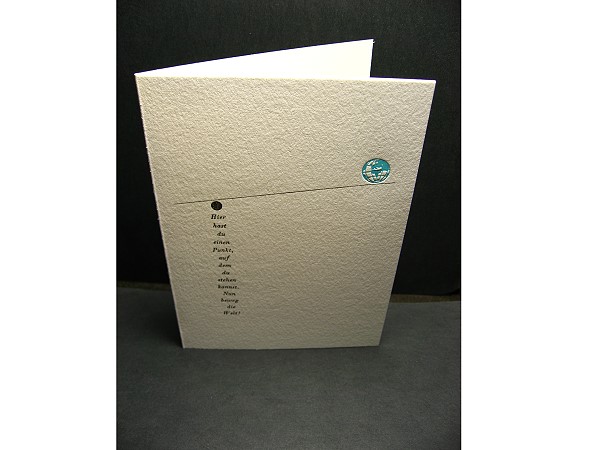 Aus dem Buch “Der Krapfen auf dem Sims” von Max Goldt überließ mir der Autor einen Text für eine Karte, die in den letzten Tagen gesetzt und gedruckt wurde.