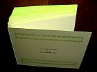 Die Karten sind mit einem hellgrünen Farbschnitt versehen. Ausgliefert werden sie mit einem dunkelgrün gefütterten Kuvert. Es handelt sich um eine Klappkarte, welche sich nach links öffnen läßt.