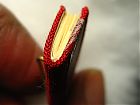 Ich komme leider selten dazu, das Büchlein anzulegen, weil ich meistens eine Schürze trage und keine Jacke mit Revers. Aber wenn sich die Gelegenheit ergibt, stecke ich das Objekt an. Wünschen würde ich mir noch eines aus Leder in grün und mit geradem Rücken und schlichter goldener ornamentaler Prägung auf dem Leder, ein Sternchen oder so was. Aber ob das wohl zu machen ist?