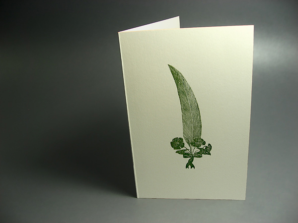 Von einem Holzstich aus dem Fundus habe ich in kleiner Auflage diese Karten im sogenannten Diplomatenformat gedruckt, als Klappkarte, geschlossen 172 × 112 mm groß. Die Geschichte des Holzschnitts und Holzstichs wird von Klaus Kramer auf dessen Website erzählt.