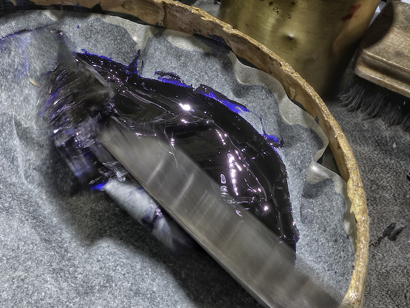 Unter dem Deckel ist die Farbe mit Papier abgedeckt, unter Druck gibt es nach, die Farbe scheint noch ganz frisch zu sein.