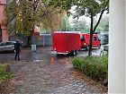 Hier sieht man die Schneidemaschine im Anhänger, der Tiegel steht noch draußen.