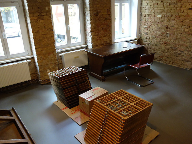 Die Setzregale machen sich gut in der neuen Setzerei.