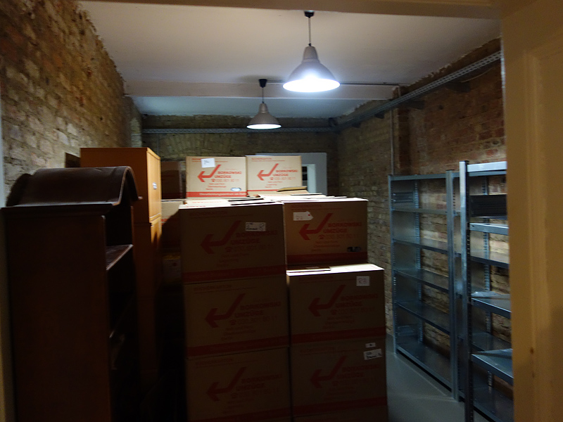 Die Kisten im Drucksaal waren am Abend leer, der Schließschrank zur Hälfte eingeräumt, das Papierlager aufgebaut und gefüllt. Damit habe ich dann wohl einige Hundert Kilo Gewicht bewegt, und ich fühlte mich abends entsprechend, nun ja, krank.