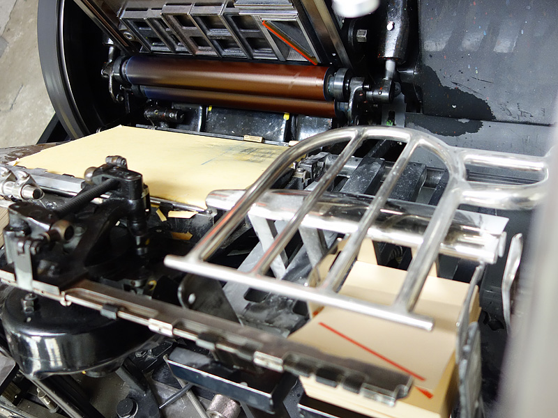 Mit roter Farbe wurden beide Druckformen eingerichtet.