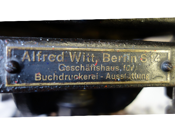 Die Maschine ist im Erstbesitz eines Berliner Familienunternehmens und wurde 1926 vom Berliner Grafischen Fachhandel Alfred Witt erworben.
